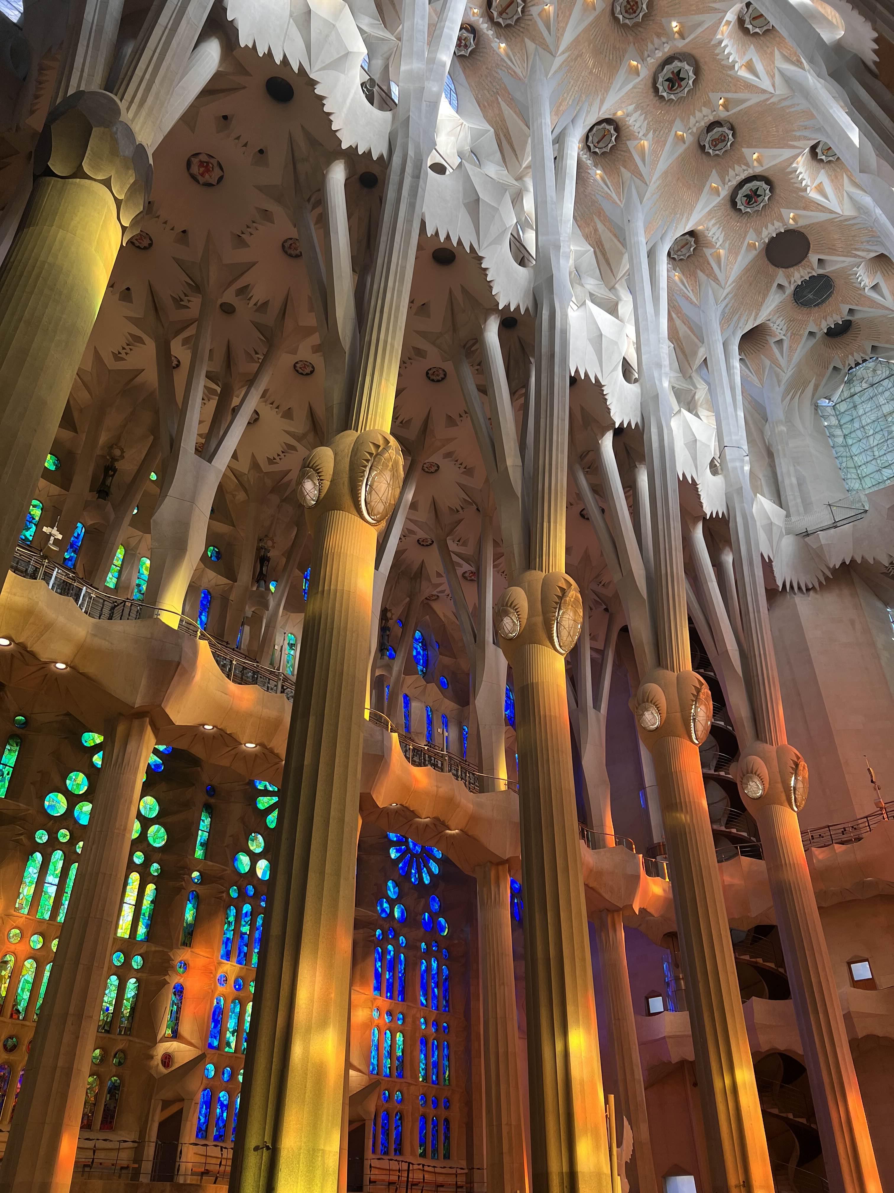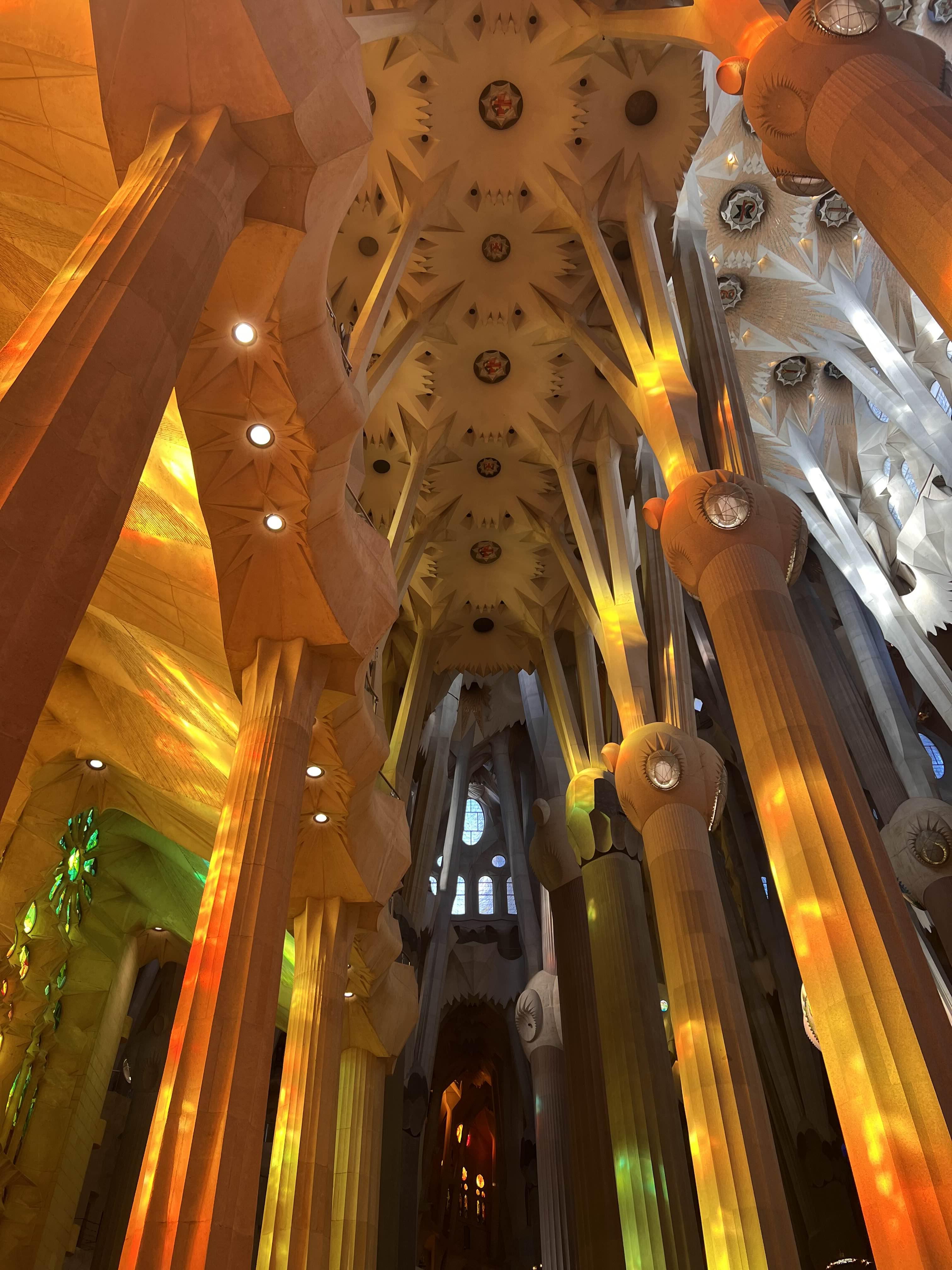 그리고 이제는 정말 사그라다 파밀리아 성당 내부에 입장 완료! 들어서는 순간부터 오색찬란한 빛이 주는 영롱함에 감탄을 자아냈고, 성당이 주는 그 특유하고 홀리한 분위기에 사로잡혀 저도 모르게 기도까지 하게 됐네요 🙏